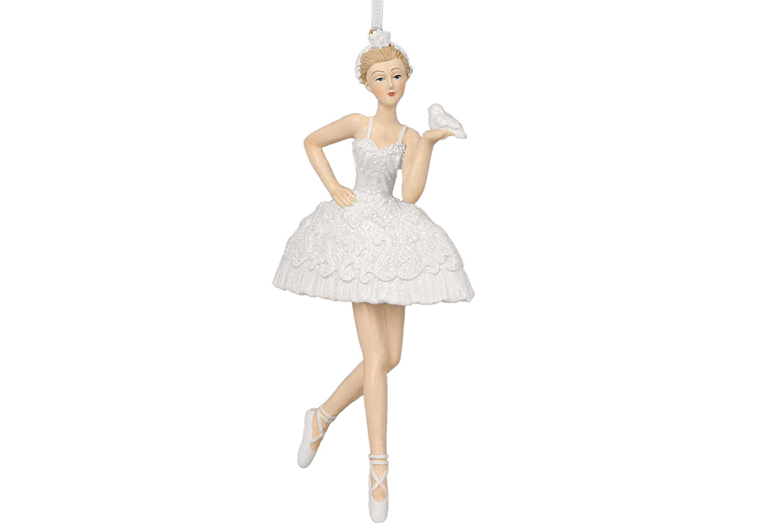Ялинкова іграшка Балерина з пташкою 8х15см, колір - молочний білий