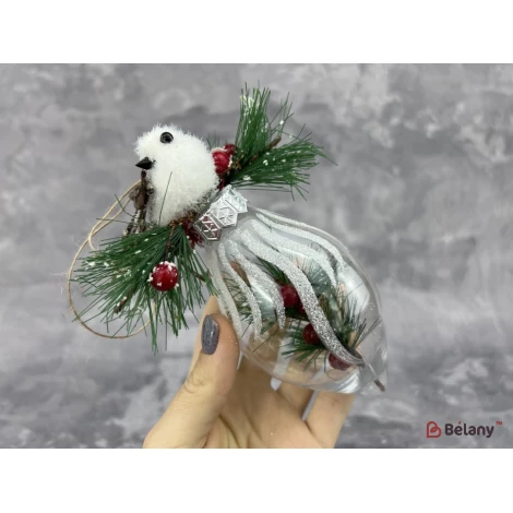 Jucărie Pentru Pom De Crăciun „Minge Albă Ca Zăpada Cu Brad”