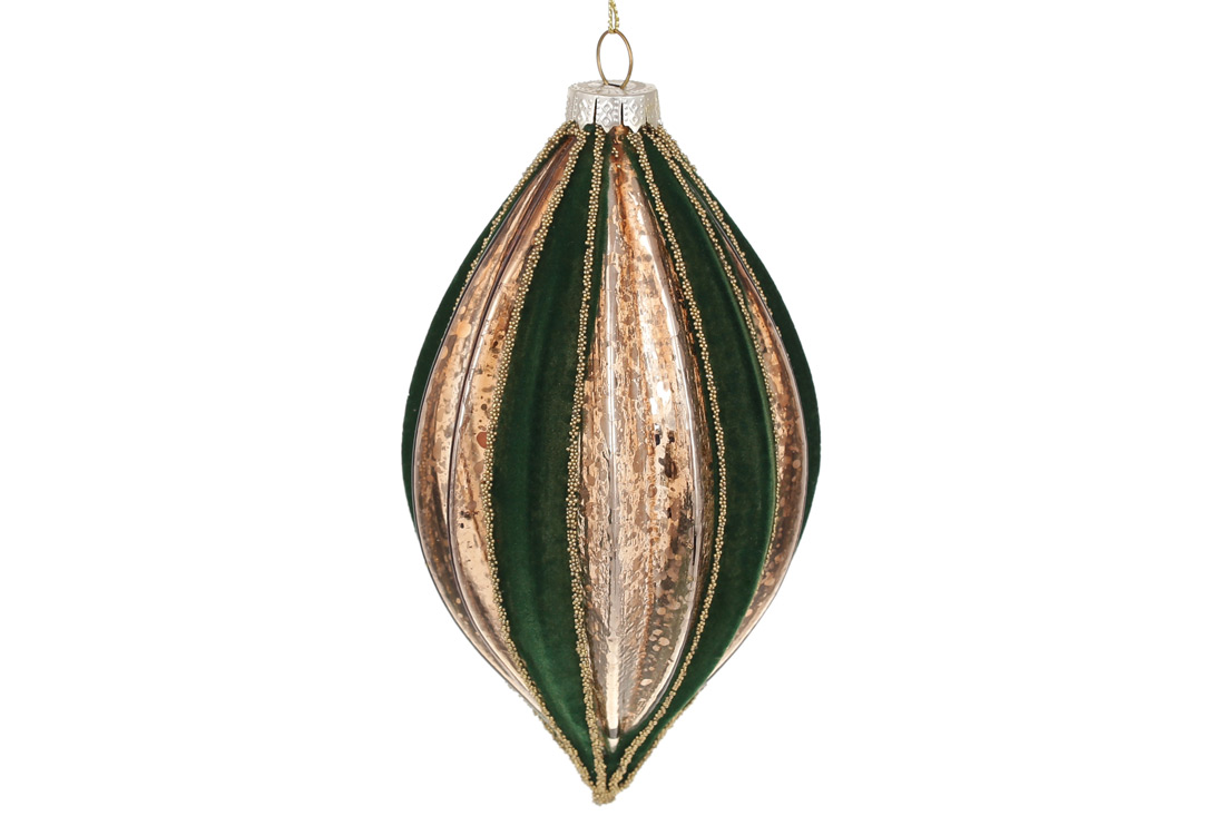 Ялинкова прикраса рельєфної форми з декором з оксамиту 15см, колір - темно-зелений з античним золотом