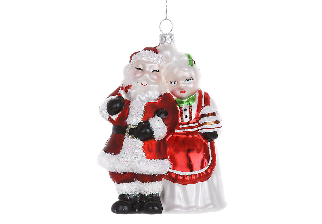 Ялинкова фігурна прикраса зі скла Містер і Місіс Клаус 12.5см