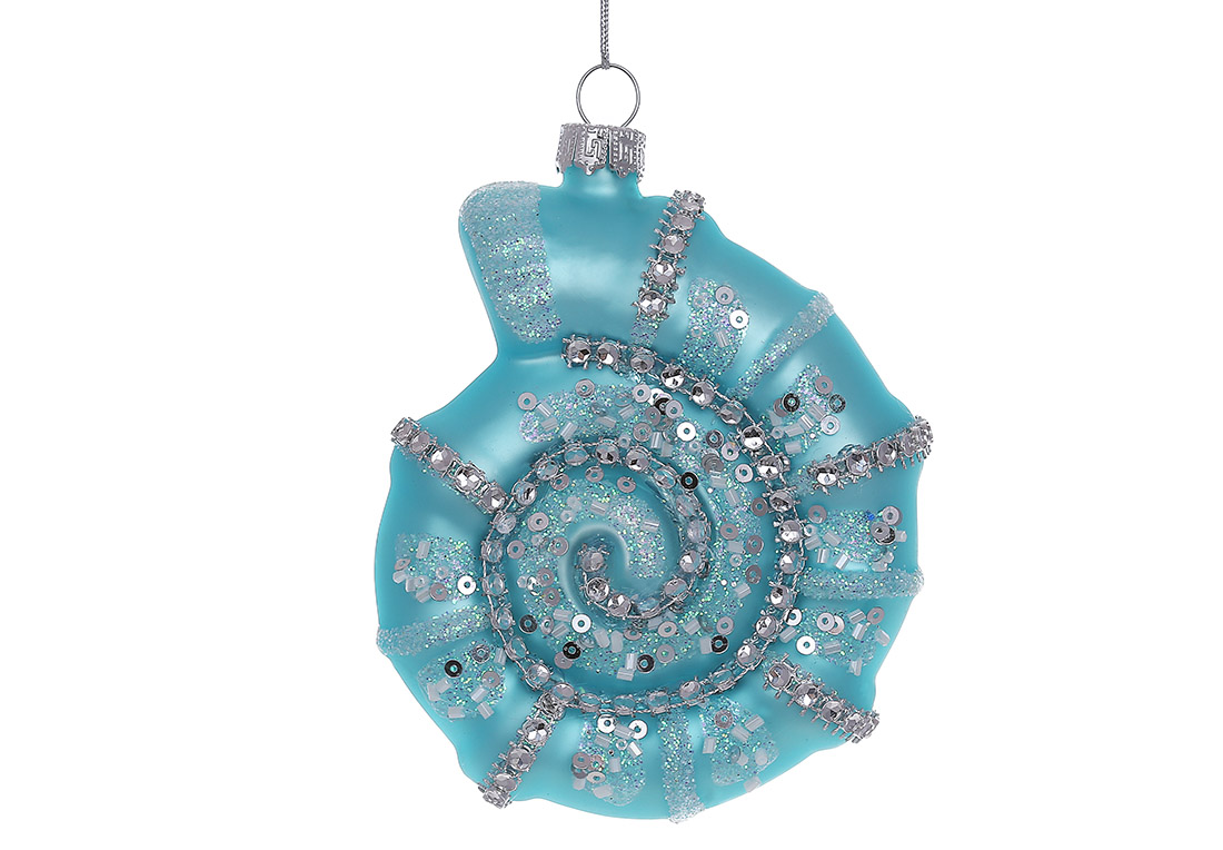 Ялинкова фігурна прикраса зі скла Морська мушля з декором з бісеру 11см