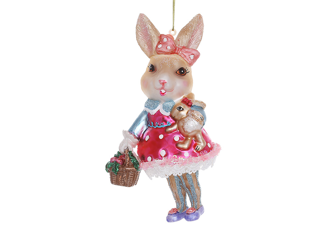 Ялинкова фігурна прикраса зі скла Зайка з кошиком 15см
