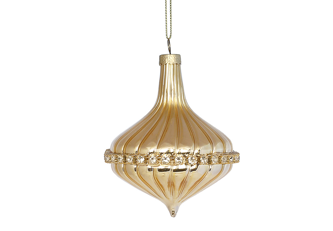 Ялинкова фігурна прикраса з декором зі страз 10см, колір - золото