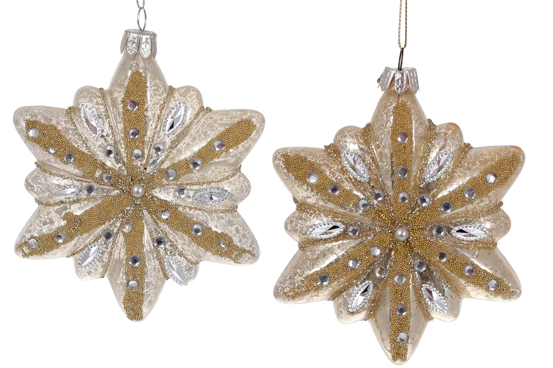 Ялинкова фігурна прикраса з декором зі страз 11см, колір - шампань