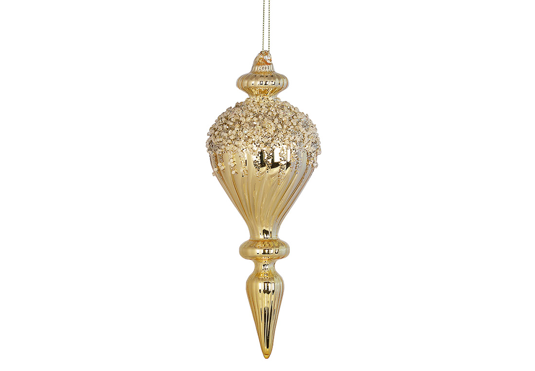 Ялинкова фігурна прикраса з декором зі страз та бісеру 22см, колір - золото