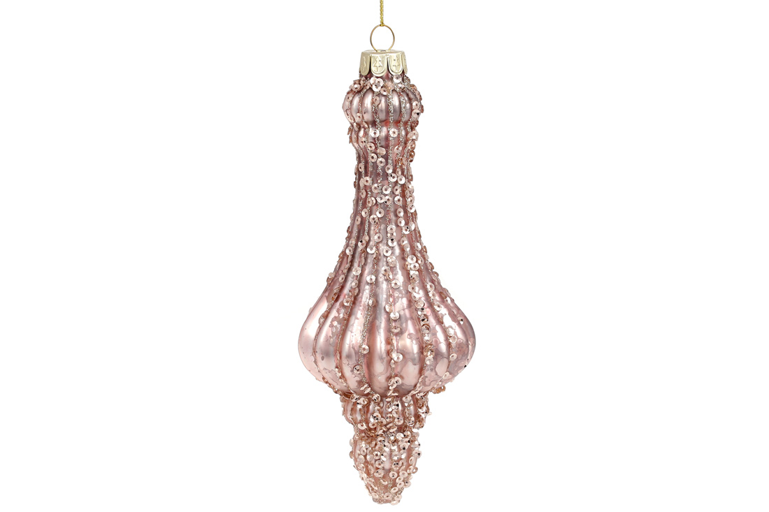 Ялинкова фігурна прикраса з гліттером 16см, колір - вечірня троянда