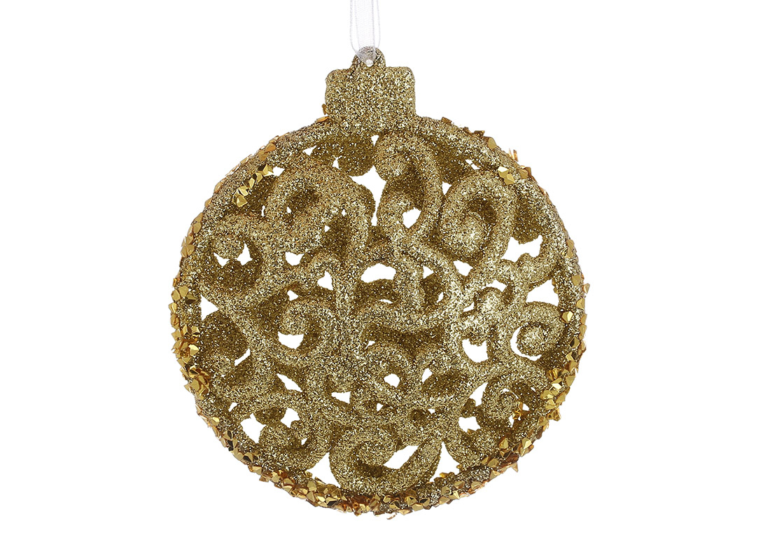 Ялинкова пластикова прикраса Ажур 11.5см, колір - золото з блискітками.