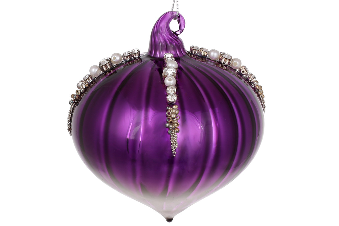 Ялинкова прикраса 8см з декором зі страз та бусин, колір - фіолетовий