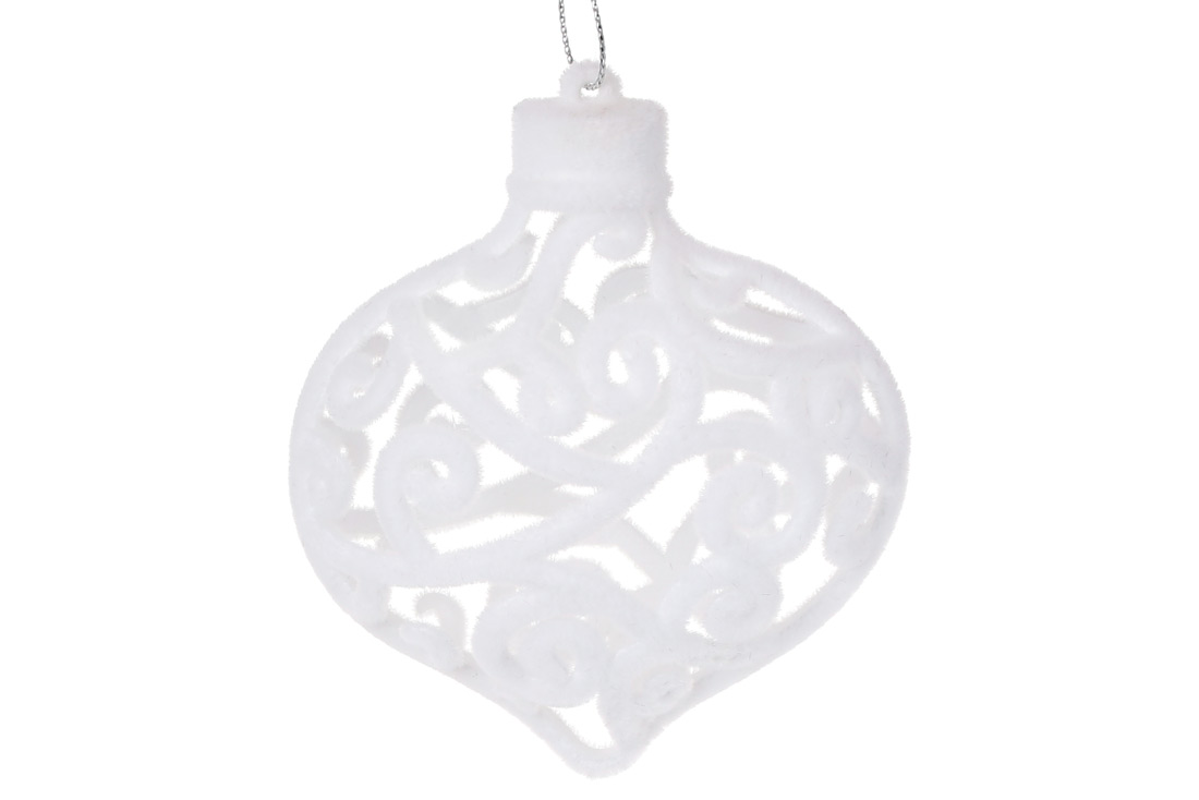 Ялинкова прикраса Ажурне серце 10см, колір - білий велюр