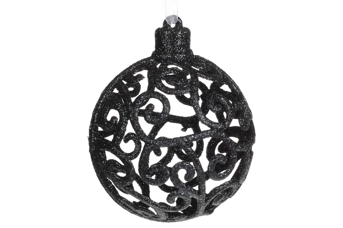 Ялинкова прикраса Ажурна куля 8см, колір - чорний