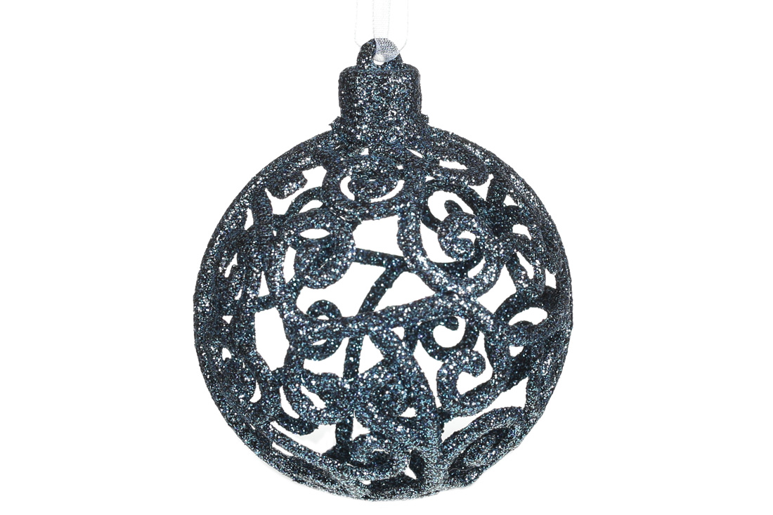 Ялинкова прикраса Ажурна куля 8см, колір - темно-синій