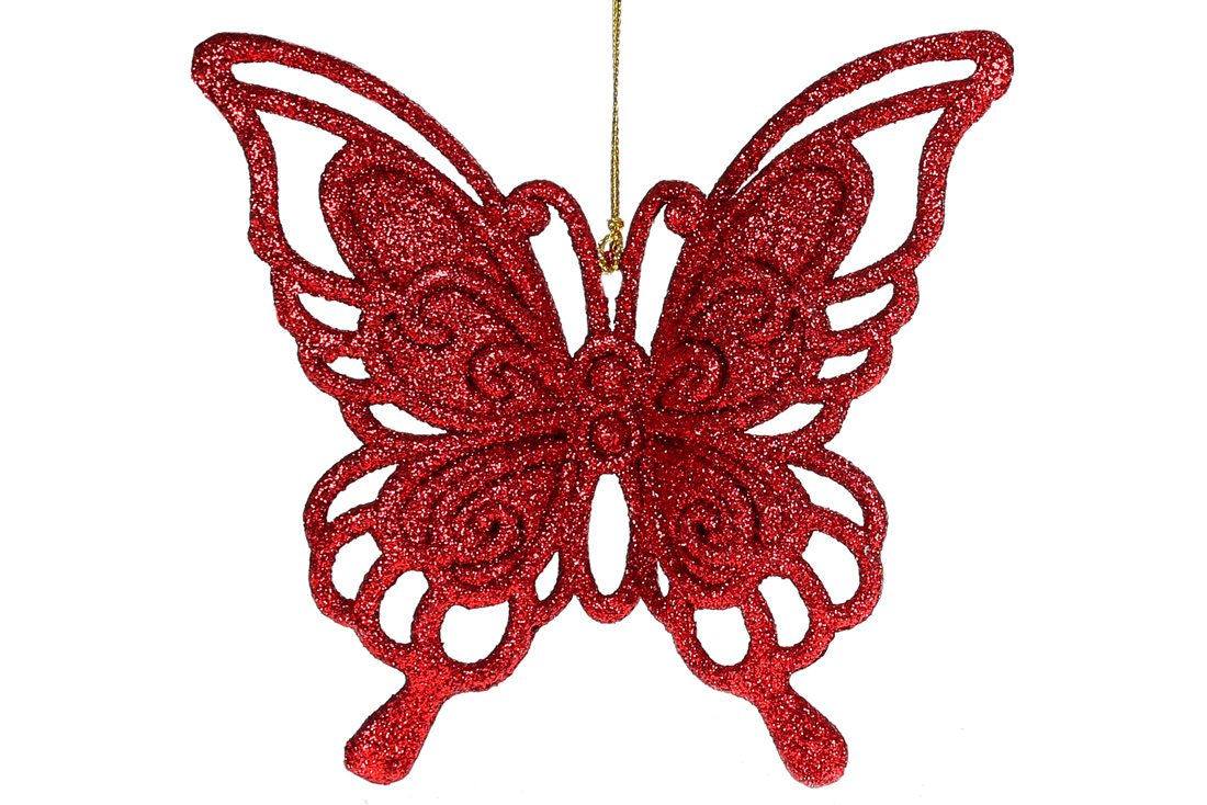 Ялинкова прикраса Метелик 14см, колір - червоний