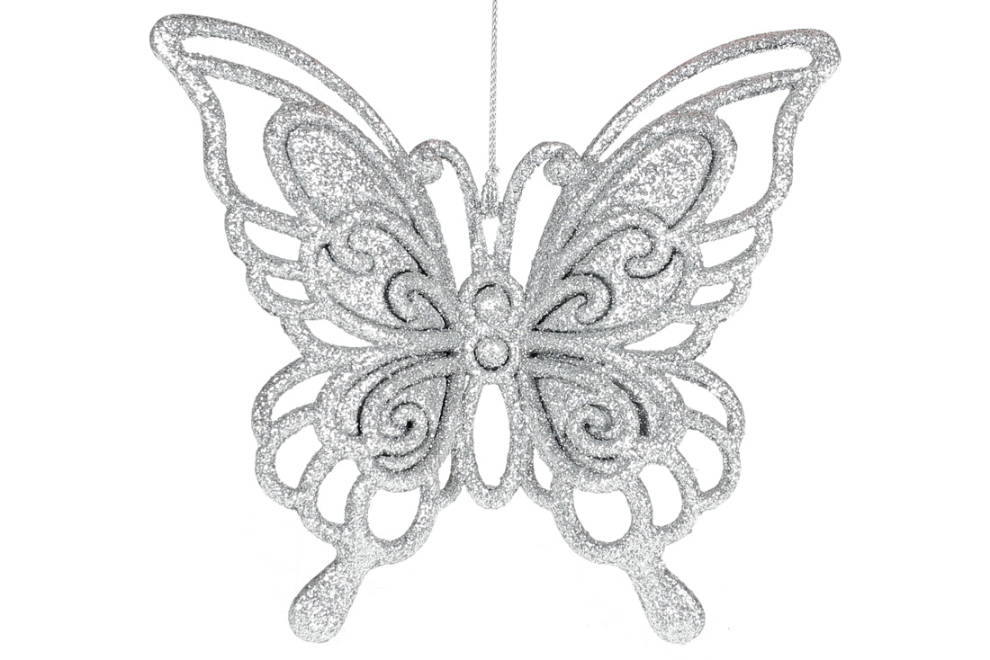 Ялинкова прикраса Метелик 14см, колір - срібло