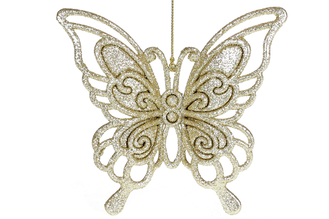 Ялинкова прикраса Метелик 14см, колір - світло-золотий