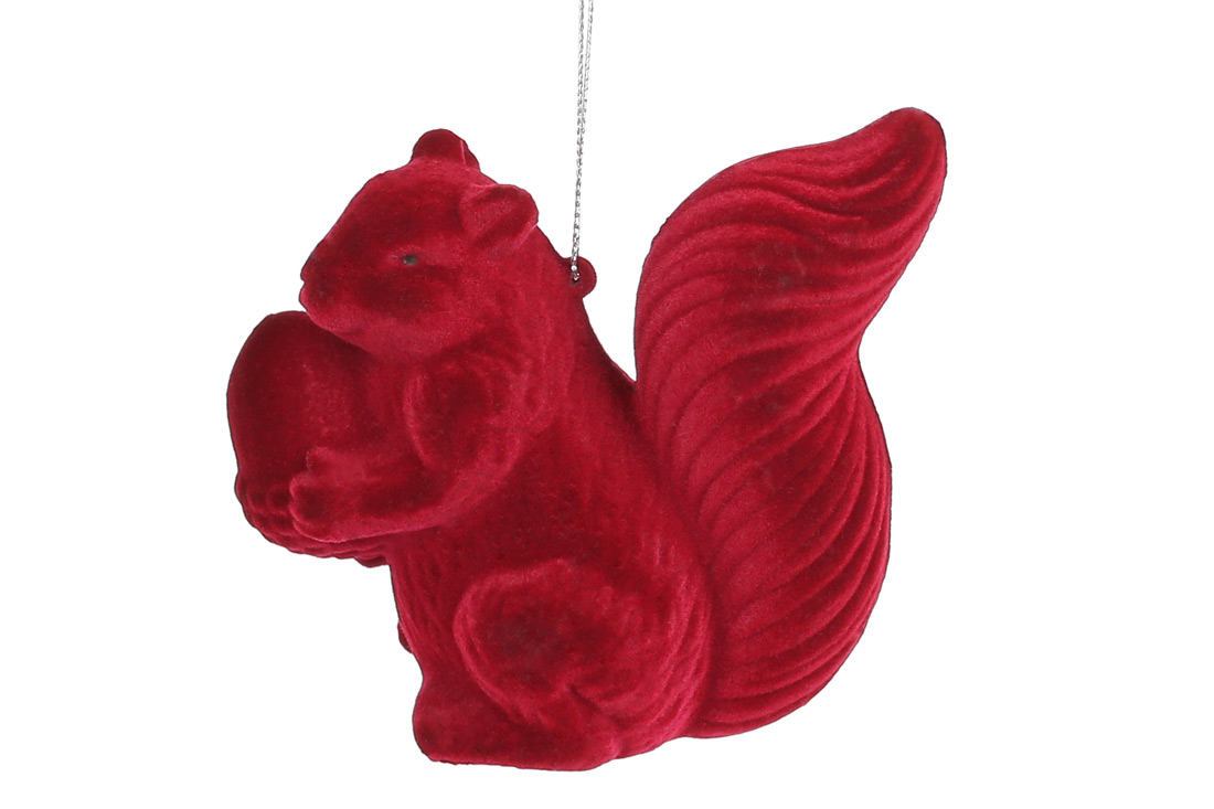 Ялинкова прикраса Білка з велюровим покриттям 10см, колір - бордо