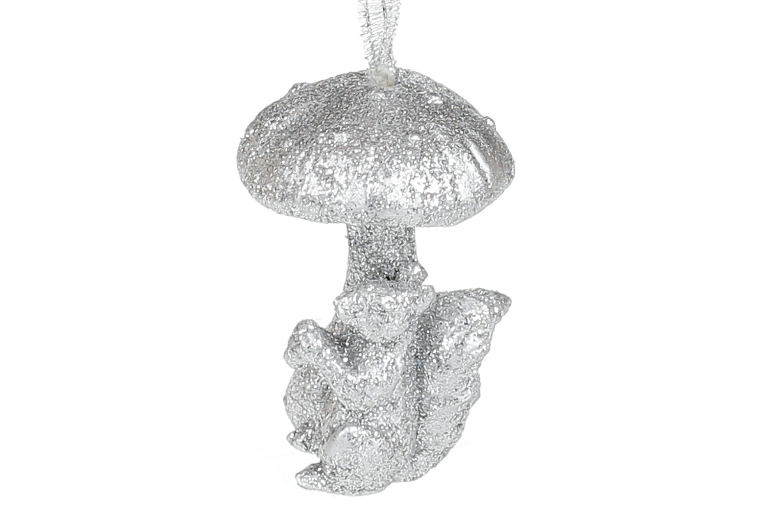 Ялинкова прикраса Білочка з грибом, 7см, колір - срібло
