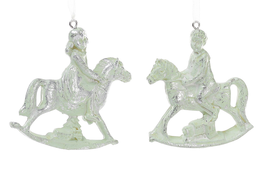 Ялинкова прикраса Діти на конячці, колір - м'ятний, 2 дизайни