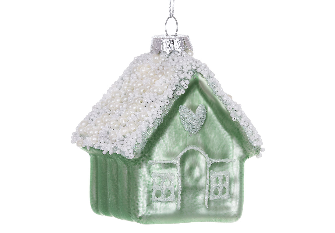 Ялинкова прикраса Дім з декором з бісеру, 10см, колір - м'ятний