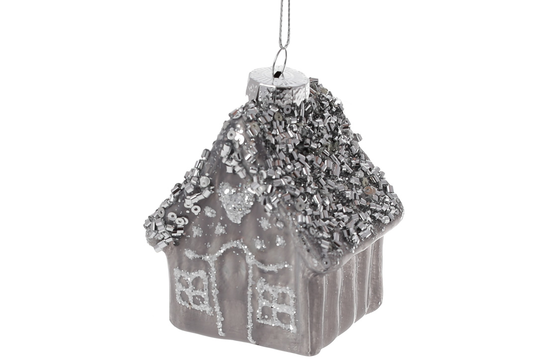 Ялинкова прикраса Будиночок, 10см, колір - срібний