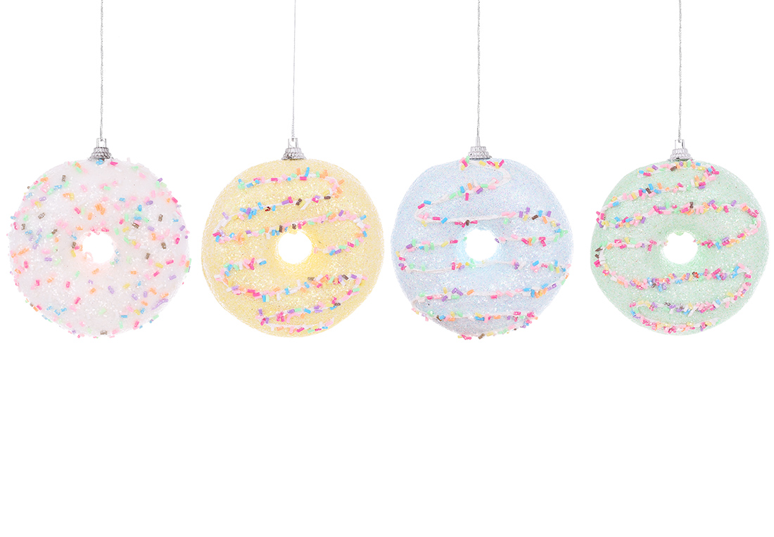 Ялинкова прикраса Донат 10см, прикрашений бісером та гліттером, 4 дизайни