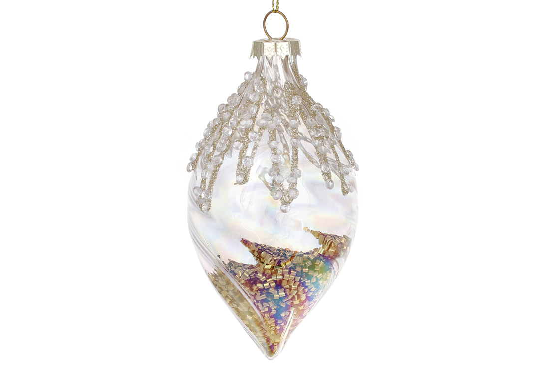 Ялинкова прикраса з прозорого скла з декором зі страз та мішурою всередині 12.5см, колір - діамант