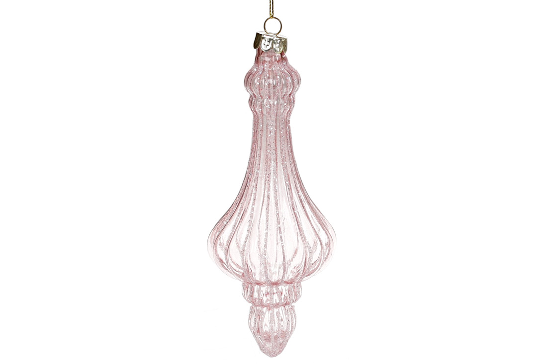 Ялинкова прикраса з прозорого скла з гліттером, 17см, колір - рожеве золото