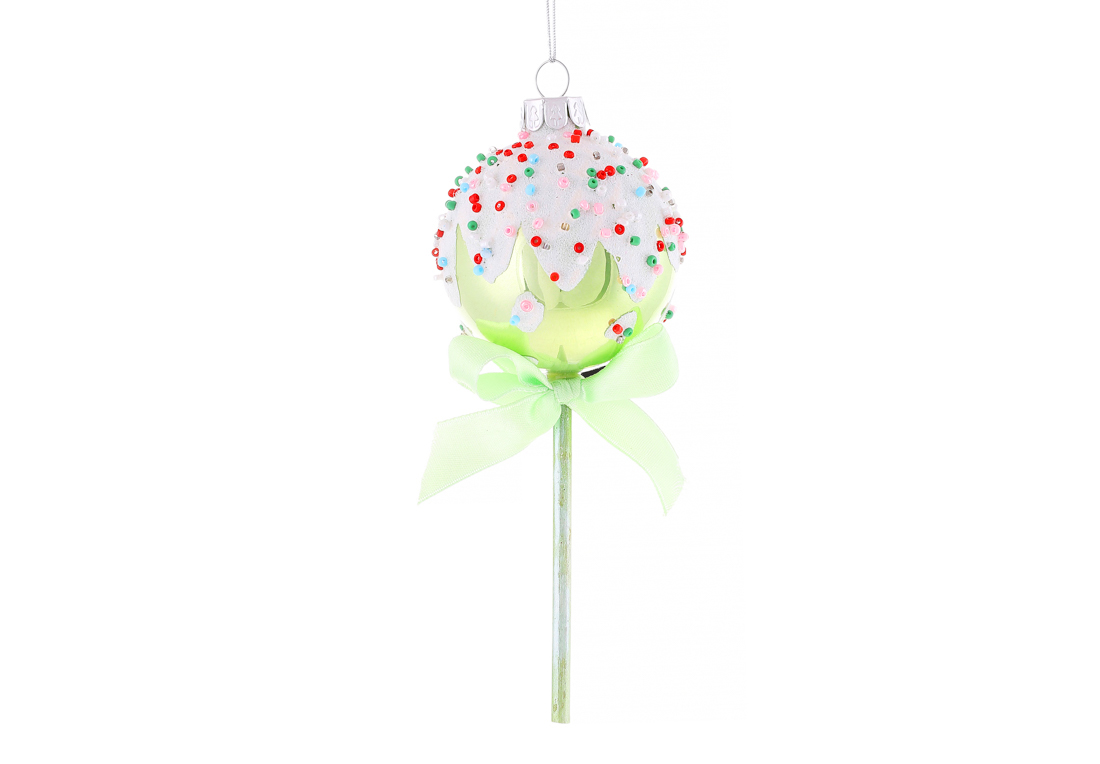 Ялинкова прикраса зі скла Карамель на паличці, 15,5см, колір - світло-зелений