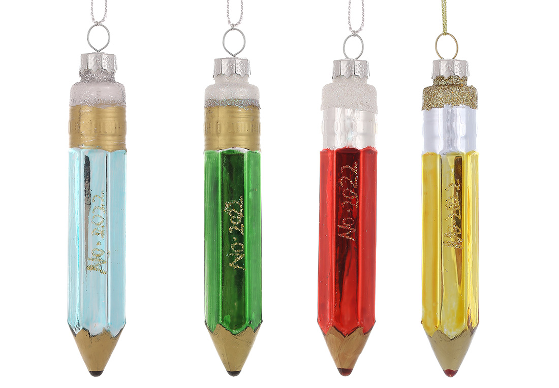 Ялинкова прикраса зі скла Олівці, 10см, 4 дизайну