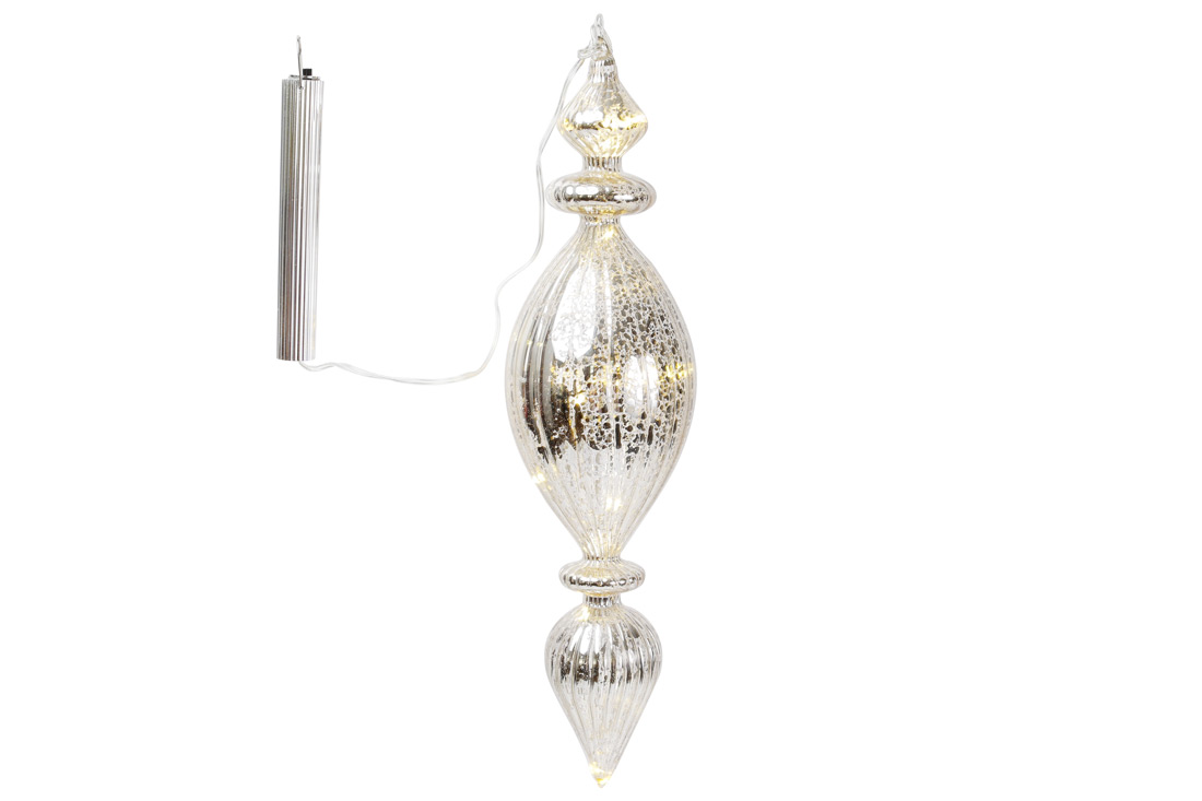 Ялинкова прикраса зі скла з LED-підсвічуванням 35см на батарейках (2хААА), колір - срібло антик