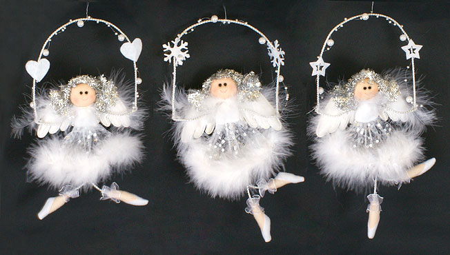 Ялинкова прикраса з тканини та пуху Янгол18см, 3 дизайни