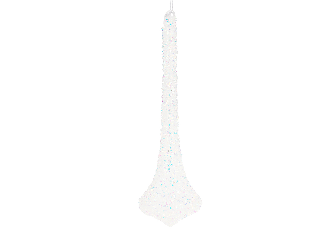 Ялинкова прикраса крапля зі скла 8*30см, колір - прозорий з глітером