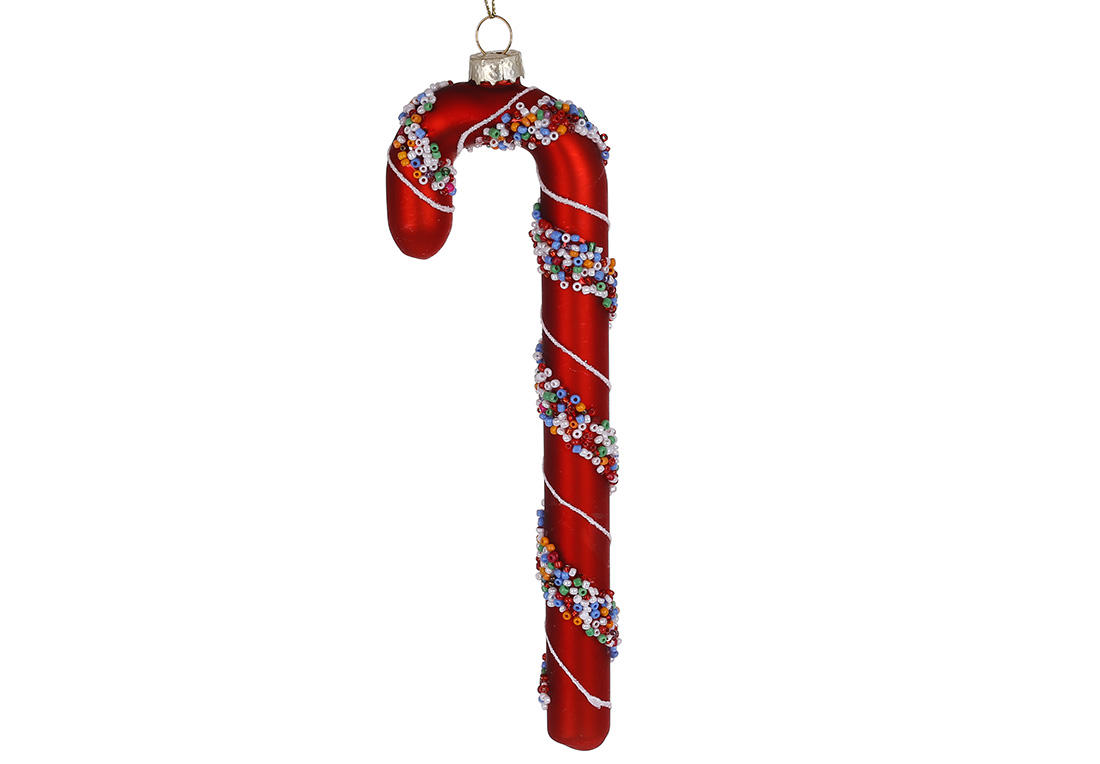 Ялинкова прикраса Карамельна палиця з декором з бісеру 20см, колір - матовий червоний