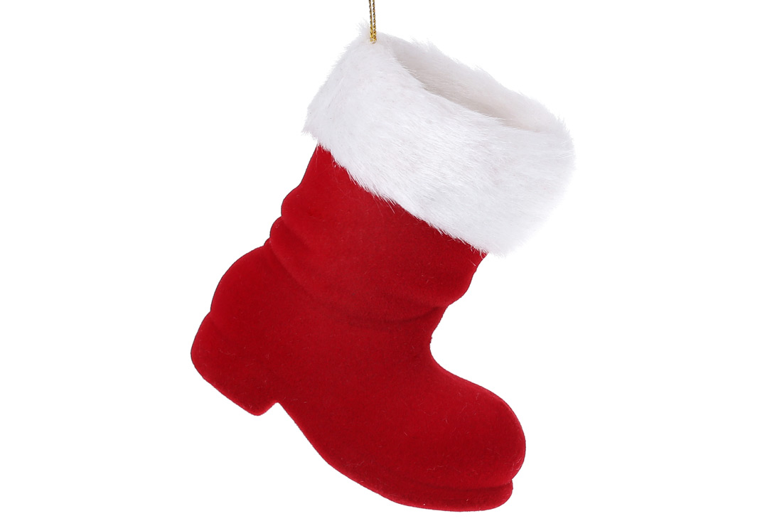 Ялинкова прикраса-кашпо Чобіток 11.5см, колір - червоний велюр