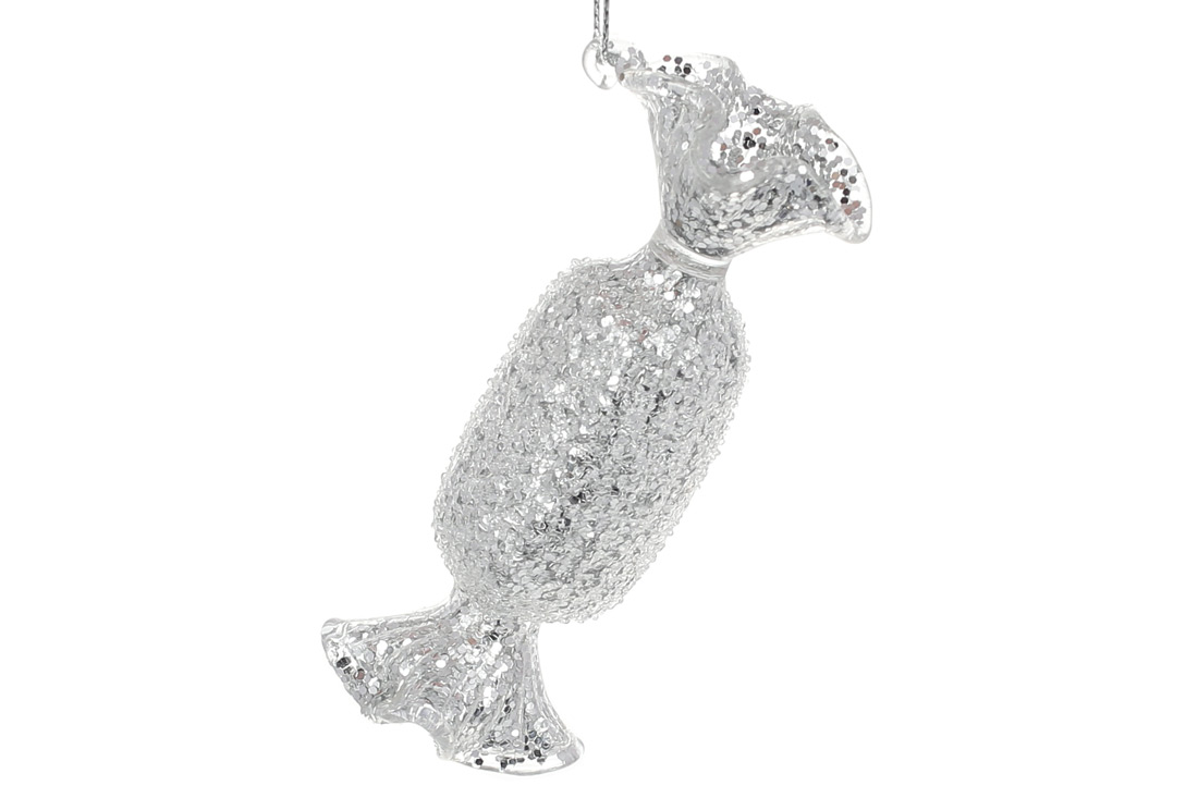 Ялинкова прикраса Цукерка з покриттям лід, 12см, колір - срібло
