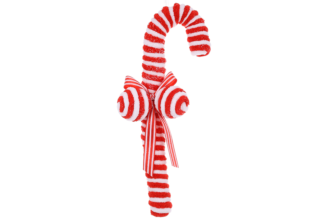 Ялинкова прикраса Льодяник з плюшу, прикрашений гліттером, 25см, колір - червоний з білим