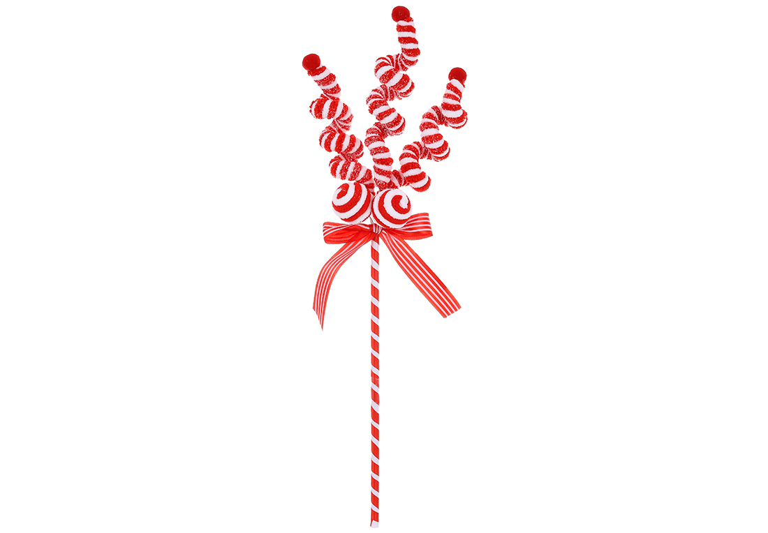 Ялинкова прикраса Льодяник на паличці з плюшу, прикрашений гліттером, 58см, колір - червоний з білим