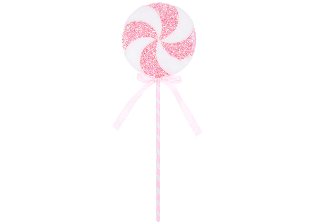 Ялинкова прикраса Льодяник на паличці з декором із крупного гліттера, 14*43см, колір - рожевий з білим
