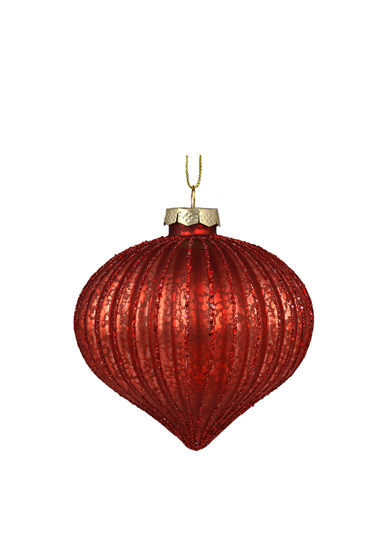 Ялинкова прикраса Цибуля 10см, колір - антик червоний з гліттером