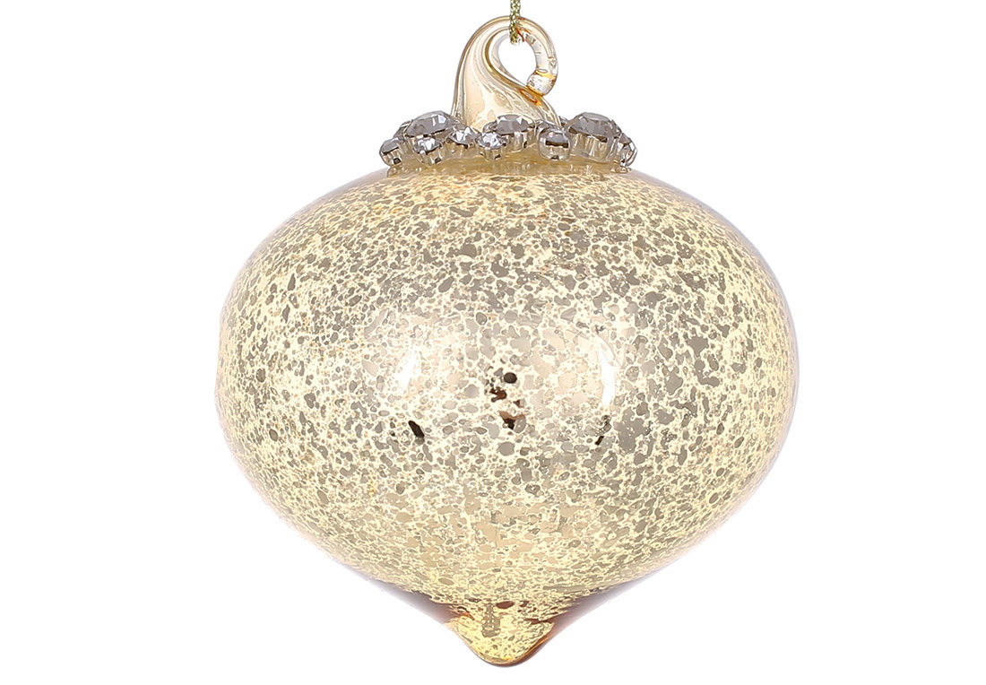 Ялинкова прикраса Цибуля з декором зі страз 8см, колір - золото антик
