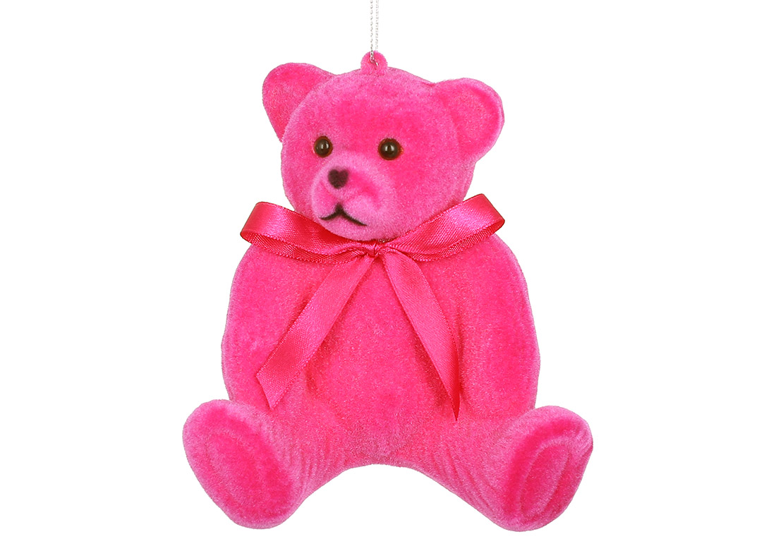 Ялинкова прикраса Ведмедик із флоковим напиленням 12см, колір - маджента