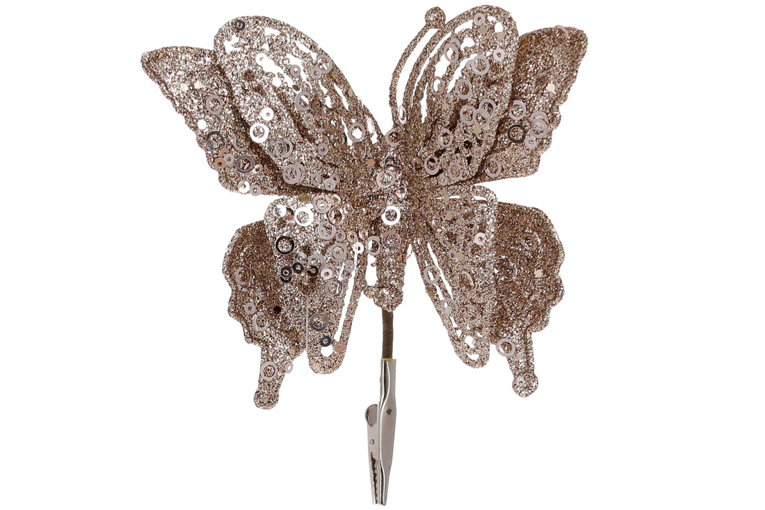 Ялинкова прикраса на кліпсі Метелик, 17см, колір - мокко гліттер
