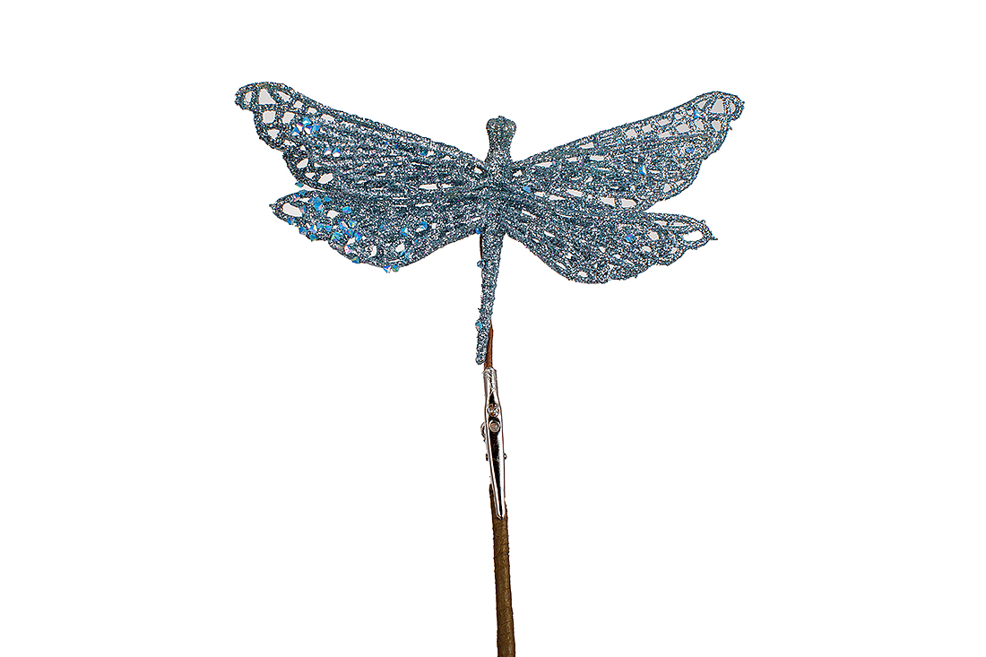 Ялинкова прикраса на кліпсі Бабка, 17см, колір - блакитний гліттер