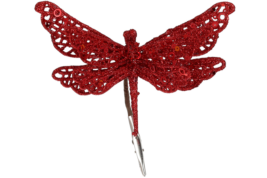 Ялинкова прикраса на кліпсі Бабка, 17см, колір - червоний гліттер