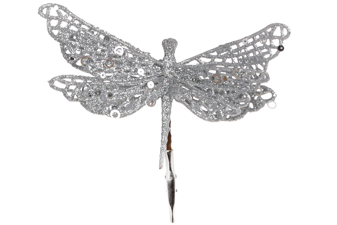 Ялинкова прикраса на кліпсі Бабка, 17см, колір - срібний гліттер