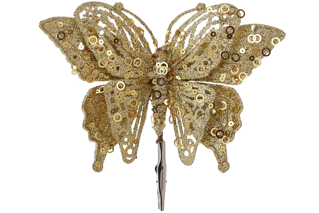 Ялинкова прикраса на кліпі Метелик, 17см, колір - золотий гліттер