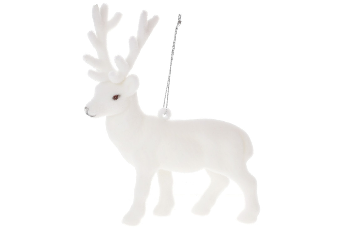 Ялинкова прикраса Олень 15см, колір - білий велюр