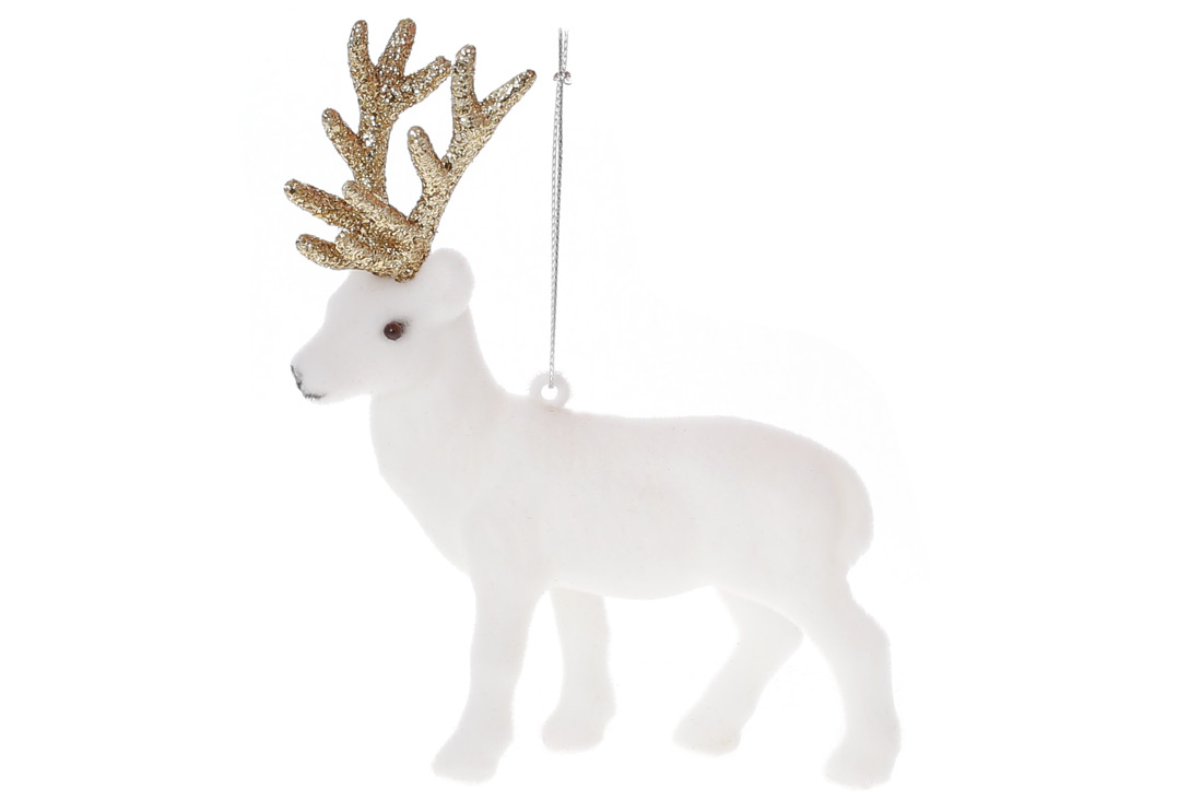 Ялинкова прикраса Олень 15см, колір - білий велюр із золотим гліттером