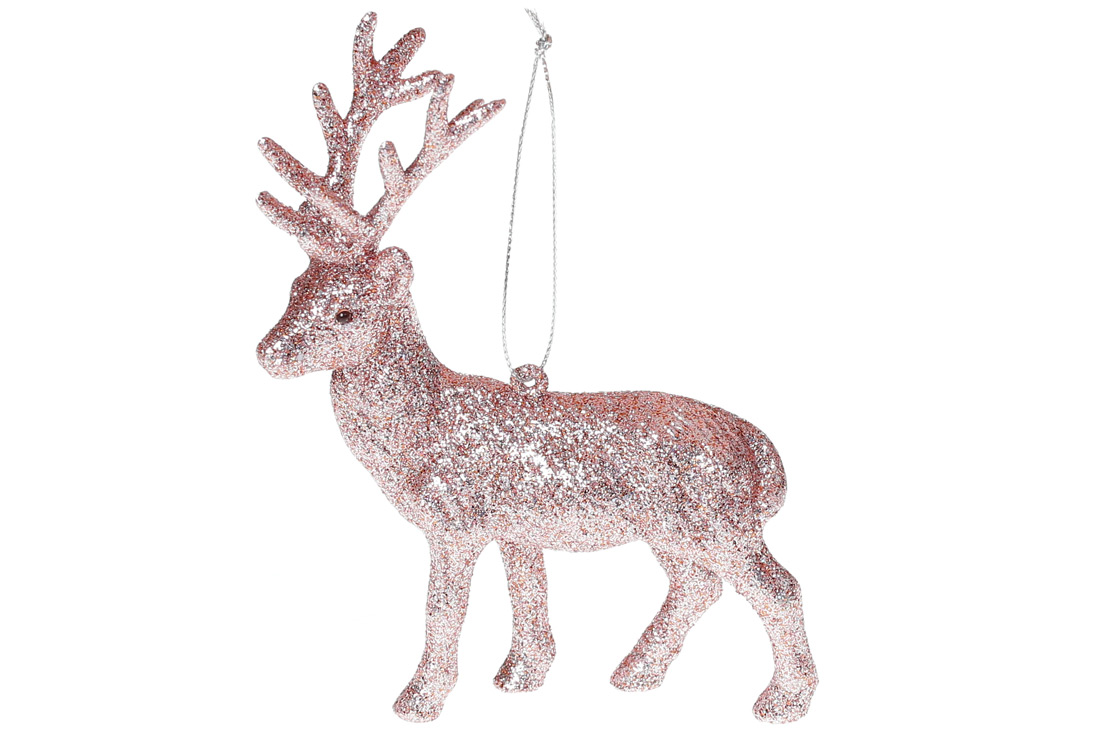 Ялинкова прикраса Олень 15см, колір - рожевий гліттер