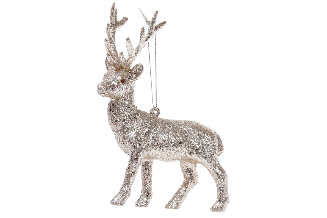 Ялинкова прикраса Олень 15см, колір - шампань гліттер