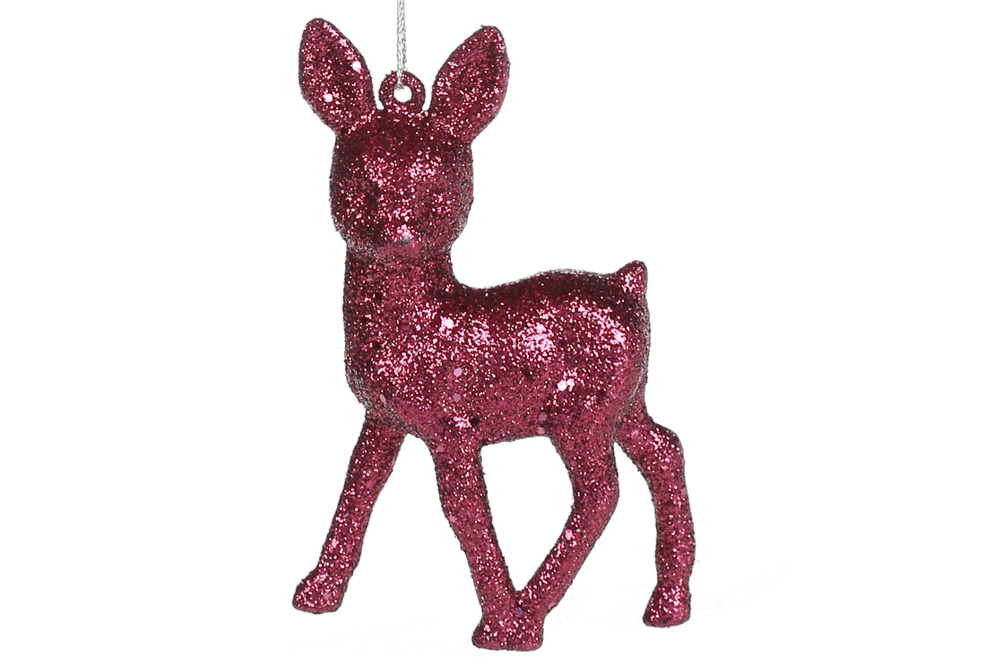 Ялинкова прикраса Оленя 10см, колір - гліттер бордо